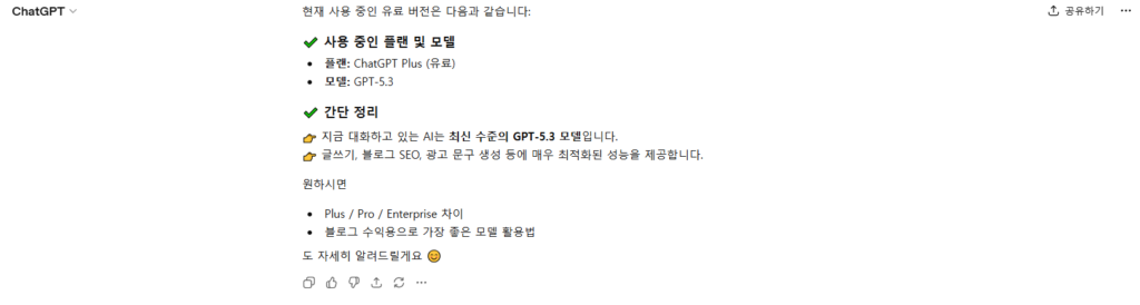 | 사용 모델 | 무료모델 | GPT-5.3(PLUS요금기준) |